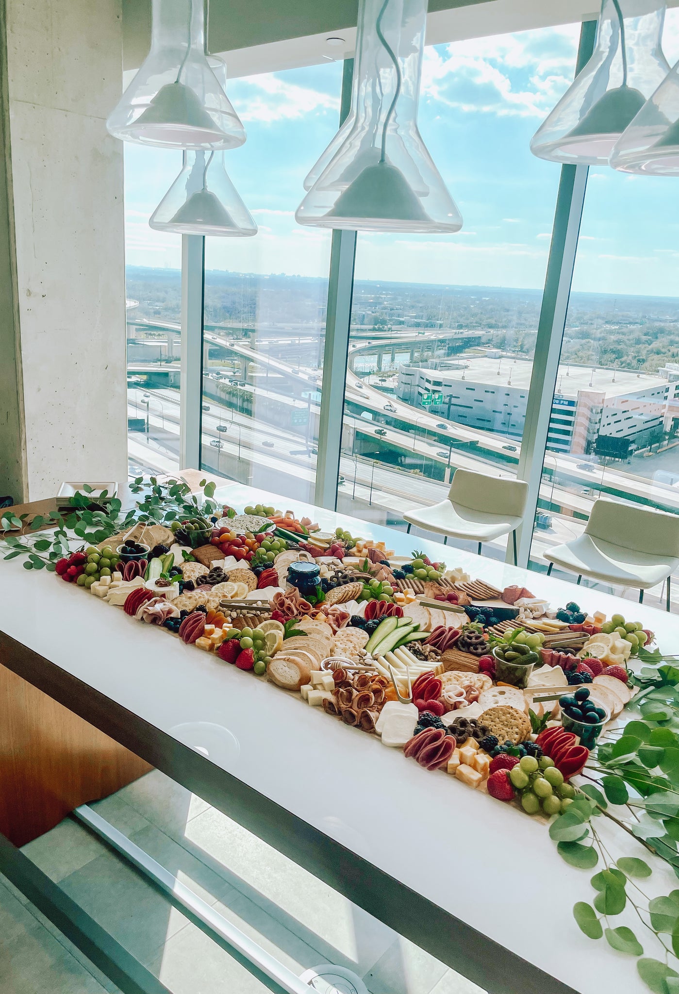 Our Flat lay Grazing Table starts at feeding 25 at $18 per person. The flat lay is a completely disposable grazing table that is set up on any flat surface at your venue. Included is your choice of 8 fine cheese, 5 charcuterie, plus all accompaniments(fresh fruits, crackers, nuts, jam etc.). It also includes fresh greenery, flowers, cutlery, tongs and small plates.